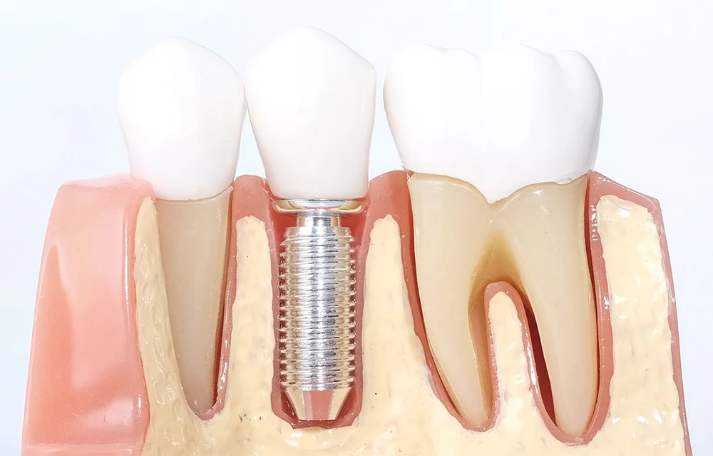 L’impianto dentale, scientificamente definito come osteointegrato, è una radice artificiale in titanio, materiale totalmente biocompatibile che si lega all’osso.